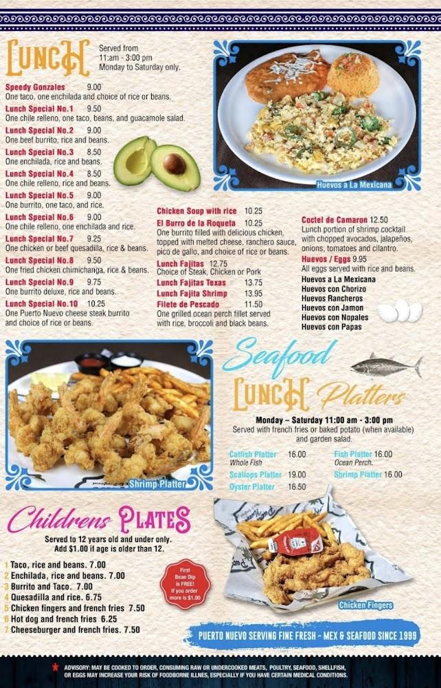 Puerto Nuevo's menu is a vibrant tapestry of flavors. Expect everything from classic tacos and enchiladas to unique creations like Buffalo nachos. The seafood options shine with fresh catfish and shrimp dishes. Vegetarian diners have plenty of choices, including bean burritos and veggie nachos. Popular lunch specials offer value without sacrificing taste. Each plate showcases authentic ingredients, balancing flavor and freshness. The diverse menu invites diners to explore favorite dishes or break new culinary ground with exciting combinations.
